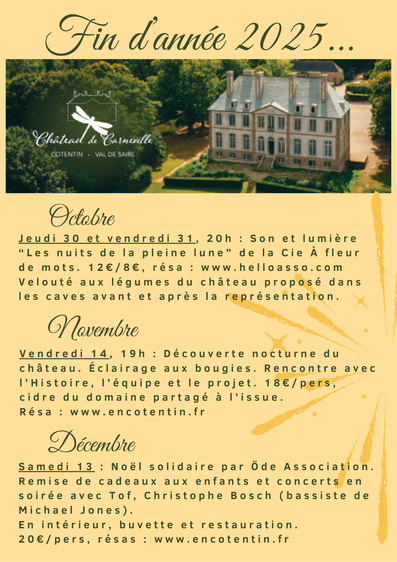 Follow us on Facebook and Instagram to get the latest informations about Château de Carneville !